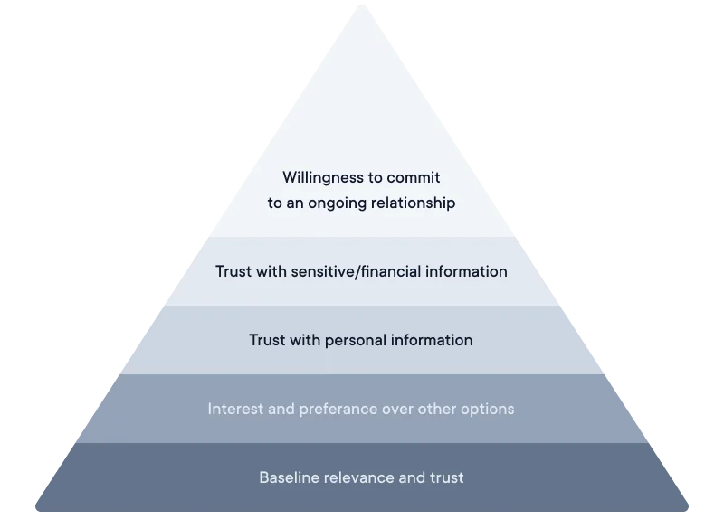 Similarly, when thinking about the experience of buying something like a car online, it’s important to think about this other pyramid (funnily enough, also based on Maslow’s pyramid of needs!) - namely, the pyramid of trust.