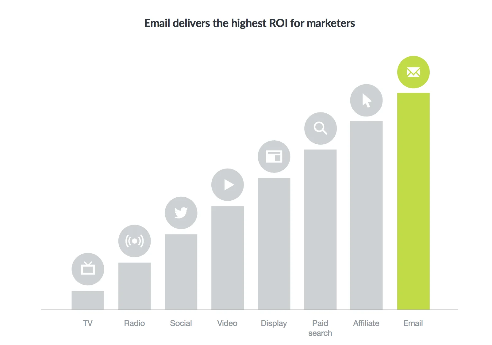 Campaign Monitor reports that in 2016 every $1 spent in email marketing results in a $44 return on investment (ROI). That means it has a 174% higher conversion rate than social media! We do know that paying special attention to UX provides a far higher ROI than email, but the numbers are still pretty astounding.