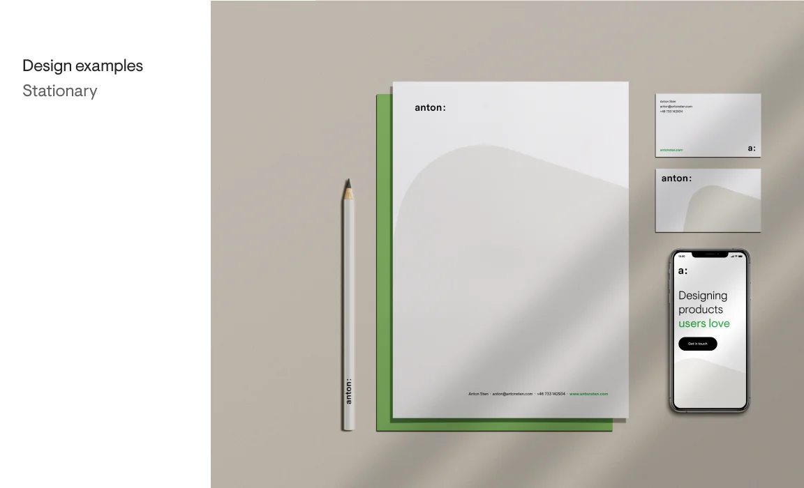 In creating Anton’s logo, I wanted to capture the essence of his multifaceted work and approach to design. The colon after his name represents the various creative endeavors Anton is involved in. Whether he’s writing, collaborating, or designing, the logo communicates his versatility and adaptability. The logo can also be presented in different lengths and abbreviations, from “anton sten studio:” to “a:,” showcasing his focus on minimalism and effective communication.